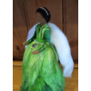 It has been crafted entirely by hand, needle felting soft multi-tone green Merino wool onto a core wool base that has been needle felted onto a metal armature. This wire structure allows for the Angel to be posable as desired.