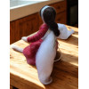 This fairy is approximately 12cm tall when in a standing position. She has a dress of dark red and has dark brown hair. She has a silver ribbon at her waist and in her hair.
